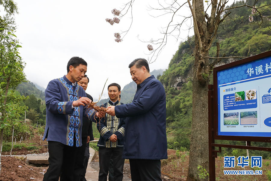 4月15日,中共中央总书记、国家主席、中央军委主席习近平在重庆考察调研。这是在石柱土家族自治县华溪村,习近平实地了解脱贫攻坚工作进展和解决“两不愁三保障”突出问题情况。 新华社记者 谢环驰 摄