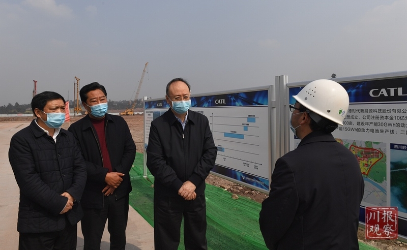 尹力在宁德时代动力电池宜宾制造基地建设工地,调研重大建设项目复工复产情况。