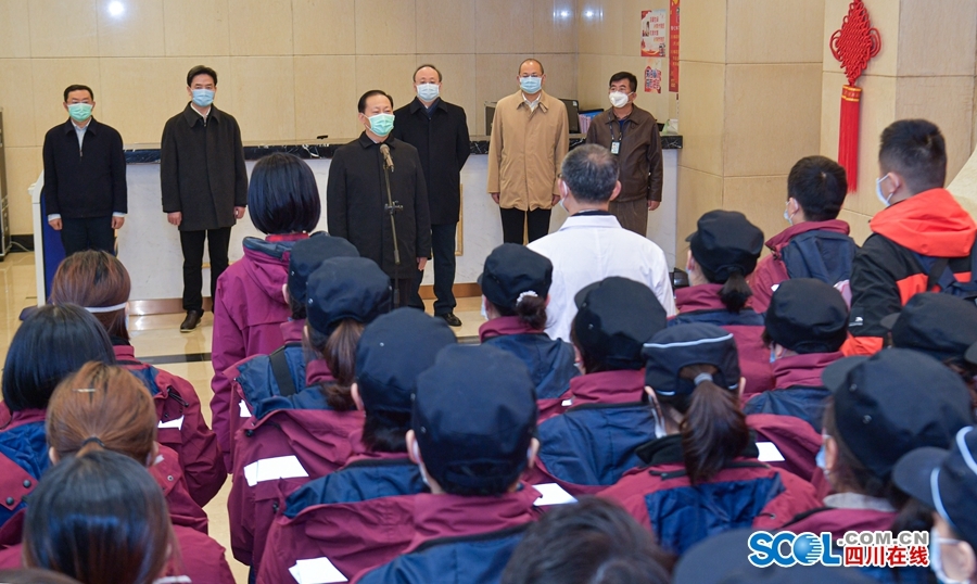 彭清华说,“生命重于泰山。疫情就是命令,防控就是责任”。这是习近平总书记发出的动员令,也是宣言书,更是军令状。做好疫情防控工作,是每一名党员干部的应尽职责,也是每一名医护人员的使命任务。支援湖北、支援武汉,向疫区选派医疗队,是党中央交给四川的一项政治任务,也是我们责无旁贷的重大责任。在本应万家团圆的日子里,大家纷纷主动请缨,义无反顾投入这场重大斗争,舍小家为大家,成为最美的“逆行者”,展现了四川医务工作者崇高的精神境界和良好的职业操守,不愧是新时代最可爱的人。希望大家带着9100万四川人民的深情厚意,带着服务全国疫情防控大局的强烈责任,与湖北人民风雨同舟、并肩战斗,发扬救死扶伤的光荣传统,秉持连续作战的过硬作风,与时间赛跑、与疫情赛跑,坚决完成各项救治任务,全力以赴、众志成城打赢这场没有硝烟的战争。希望大家切实增强自我防护意识,注意科学施救,相互帮助、相互协助、相互关心,在救助他人的同时切实保护好自己。全省各级党委、政府和全体四川人民是你们的坚强后盾,各级组织和所在单位要照顾好你们的家人,帮助解决实际困难,为大家解决后顾之忧。