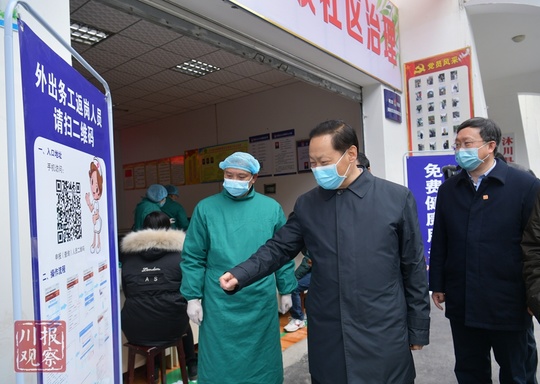 2月17日,彭清华书记到乐山市沐川县沐溪镇梨园社区检查督导疫情防控工作,了解外出务工人员健康申报和查询系统运行情况。