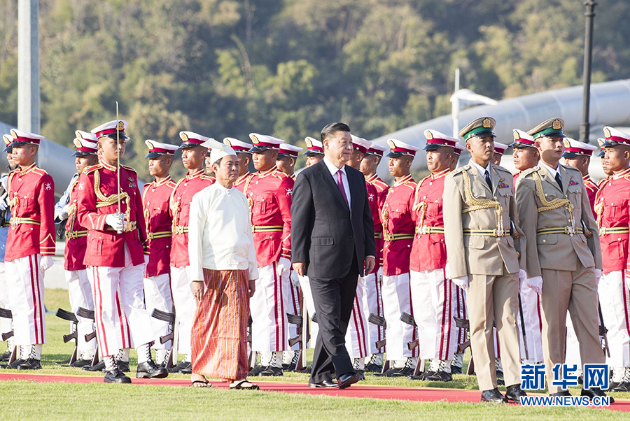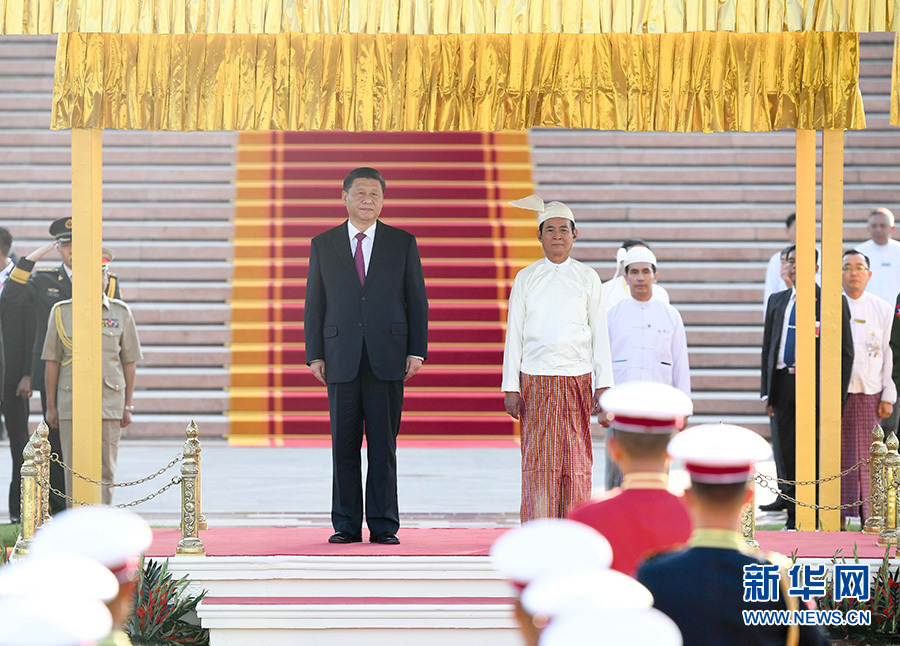 新华社内比都1月17日电(记者蒋国鹏)当地时间1月17日下午,国家主席习近平在内比都总统府出席缅甸总统温敏举行的隆重欢迎仪式。