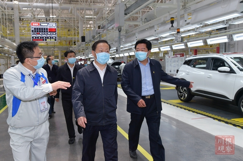 4月26日,省委书记彭清华到宜宾三江新区汽车产业园凯翼汽车公司调研,在总装车间观看自动化总装生产线运行情况。