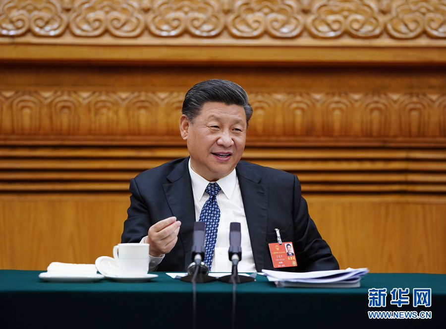 5月24日,中共中央总书记、国家主席、中央军委主席习近平参加十三届全国人大三次会议湖北代表团的审议。 新华社记者 李学仁 摄