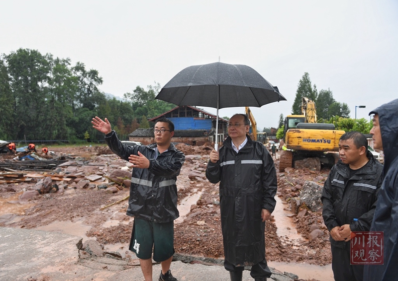 8月11日,省委副书记、省长尹力在芦山县龙门镇王家村实地查看灾情。