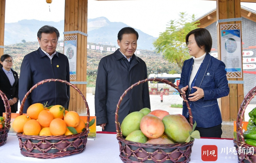 2020年12月10日,省委书记彭清华到攀枝花市米易县草场镇龙华村调研,观看当地优质特色农产品,了解建设现代农业园区带动群众增收致富情况。
