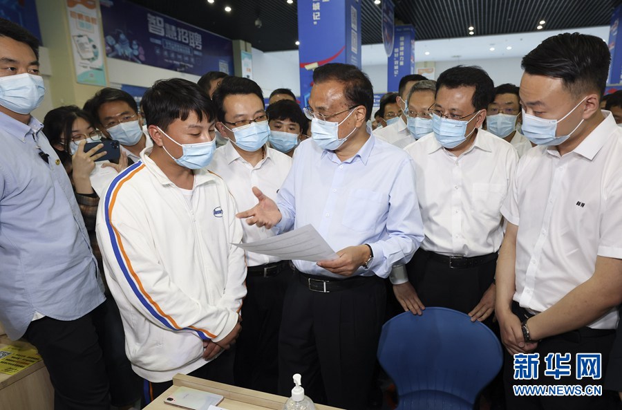 5月24日至25日,中共中央政治局常委、国务院总理李克强在浙江宁波考察。这是5月24日,李克强在宁波人才市场与求职人员交谈。新华社记者 黄敬文 摄