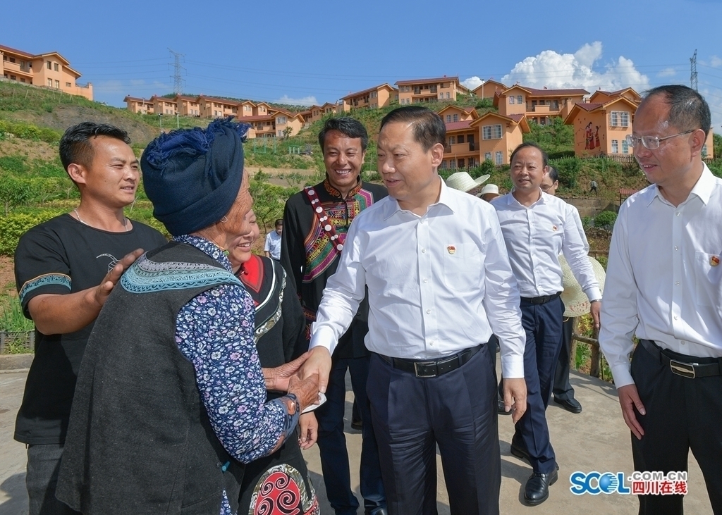 △5月31日,省委书记彭清华到峨边县新林镇茗新村调研,察看村容村貌,看望已脱贫群众。