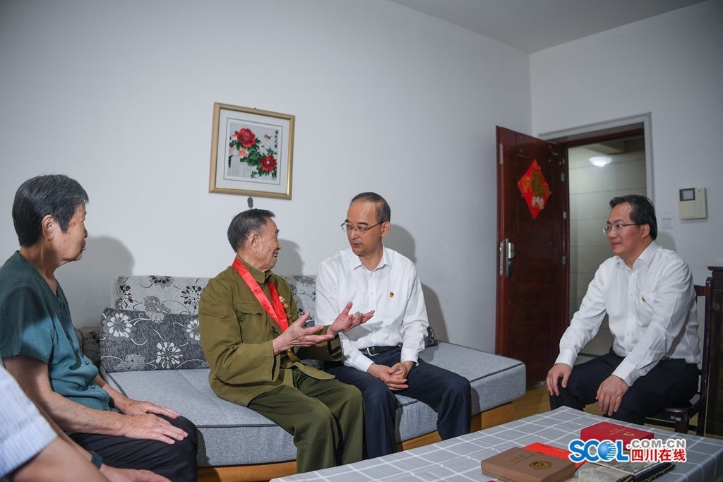 调研期间,黄强还专程前往泸州市龙马潭区芶基贵、自贡市沿滩区曹学如、内江经开区彭代新等三位老党员家中看望慰问,为他们颁发、佩戴“光荣在党50年”纪念章,强调要铭记老党员老干部作出的巨大贡献,赓续红色血脉、汲取奋进力量,不断将党的事业和四川发展推向前进,各级党组织要做好服务保障工作,用心用力解决老党员老干部的实际困难。
