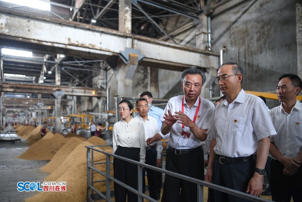 6月21日,黄强在五粮液集团公司,调研企业生产经营及白酒产业创新发展情况。