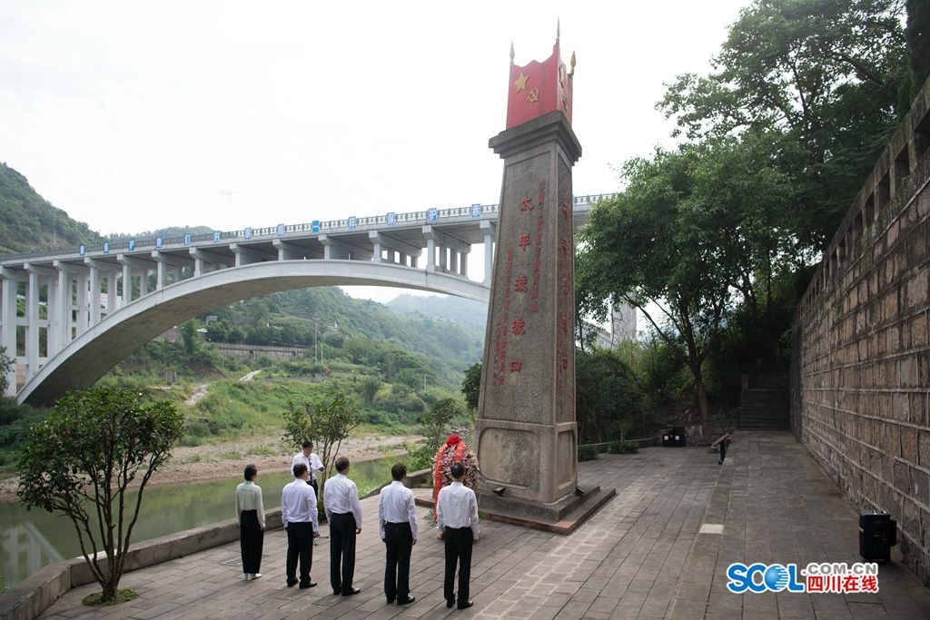 6月22日,在泸州市古蔺县太平镇,黄强向中国工农红军四渡赤水太平渡渡口纪念碑敬献花篮。