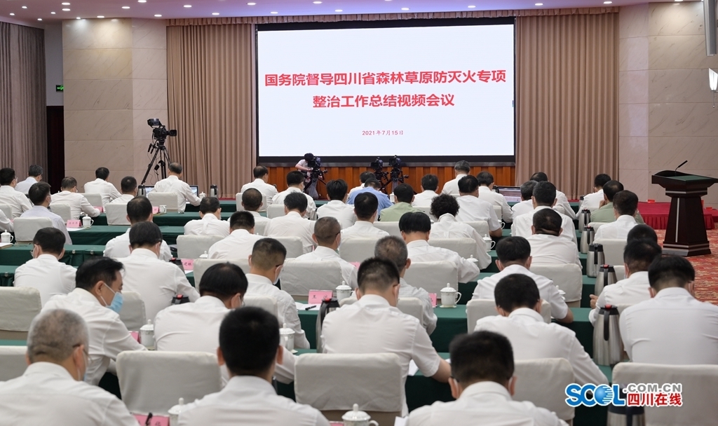 会议在应急管理部机关和四川省委机关分别设主会场,四川全省各市(州)和有森林草原防灭火任务的县(市、区)设分会场。会上播放了四川森林草原防灭火专项整治汇报专题片,凉山州、甘孜州、应急管理厅、省林草局负责同志作汇报发言。应急管理部党委委员徐平、张永利,国务院督导组常务副组长付建华,副组长戴建国、李树铭、彭小国,国务院督导组成员单位负责同志、专家组有关人员,四川省专项整治工作领导小组副组长,省森防指指挥长、副指挥长,有关省领导,省专项整治工作领导小组、省森防指成员单位和省直有关部门负责同志等参加会议。