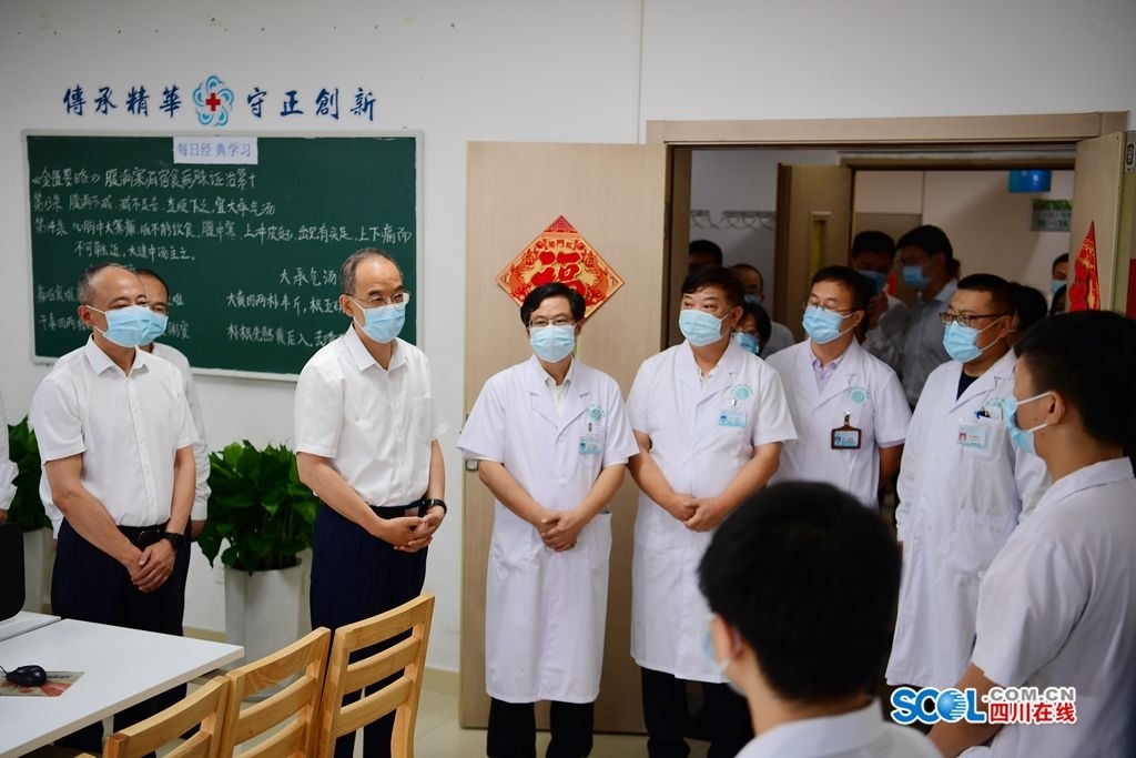 黄强在成都中医药大学附属医院看望慰问呼吸科、推拿科医务人员。