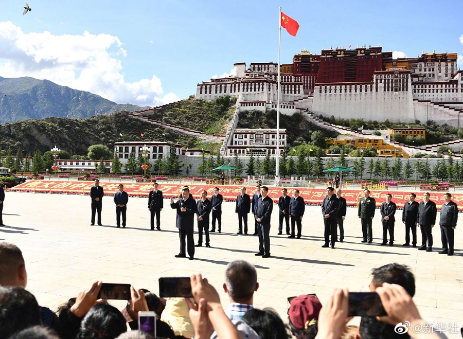 22日下午,习近平总书记来到拉萨市布达拉宫广场。广场上的群众看到总书记来了,热情围拢过来。习近平表示,今年是西藏和平解放70周年。70年来,西藏各族群众生活发生翻天覆地变化,中国共产党做了该做的事情。习近平强调,我们56个民族是中华民族共同体,要同舟共济、迈向第二个百年奋斗目标。只要我们跟着中国共产党走、坚定走中国特色社会主义道路、同心协力、加强民族团结,就一定能够如期实现中华民族伟大复兴的辉煌目标。(文字记者张晓松、朱基钗;摄影记者燕雁)