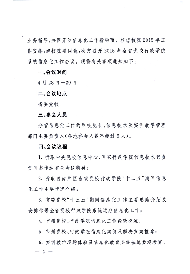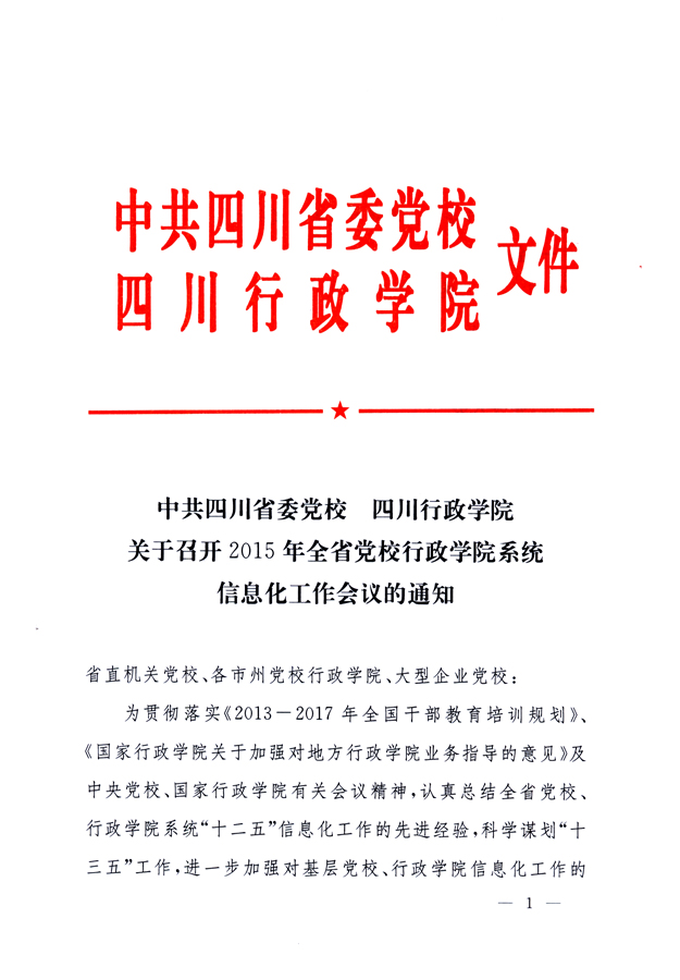 关于召开2015年全省党校行政学院系统信息化工作会议的通知