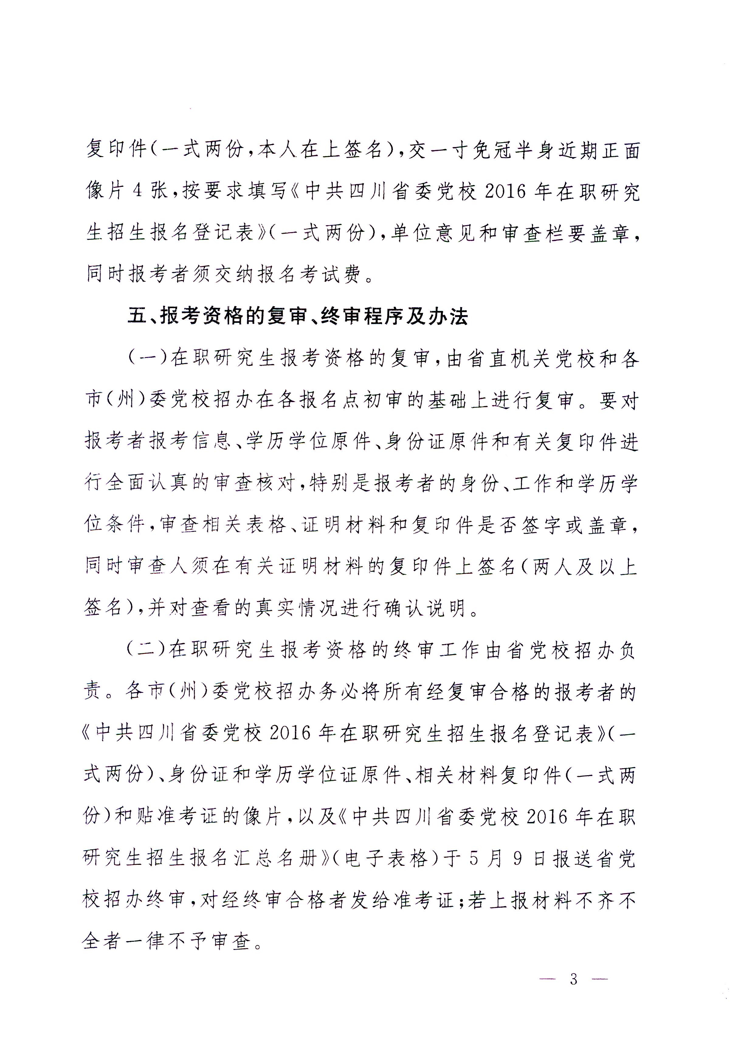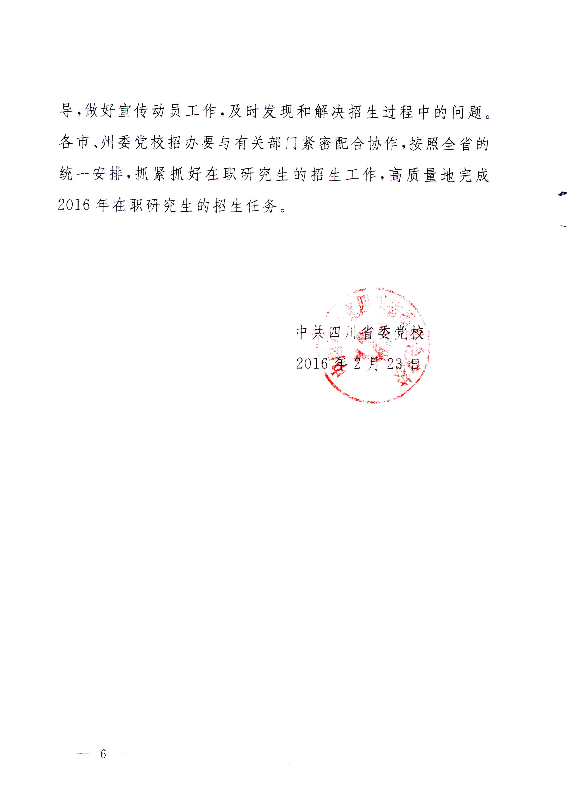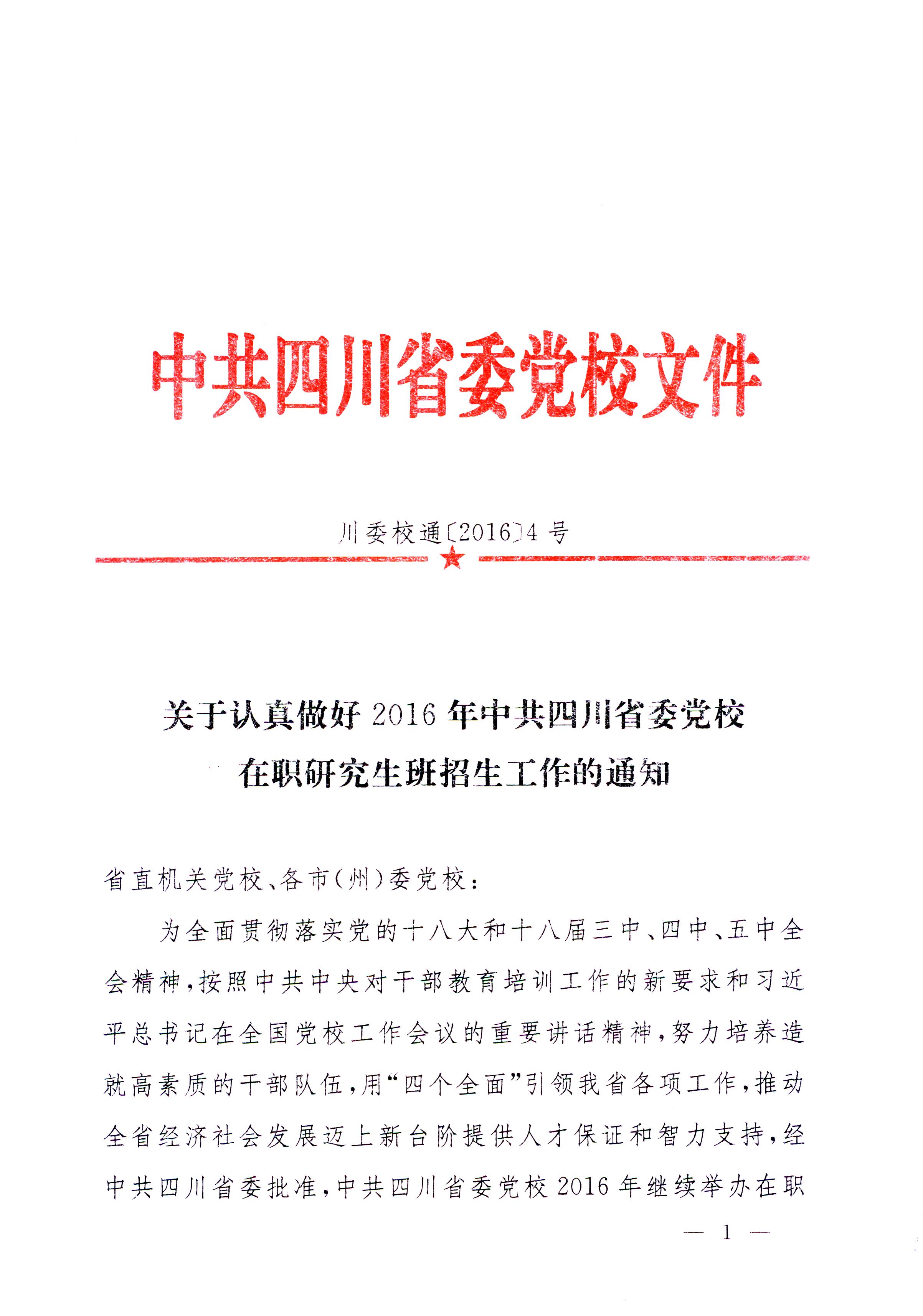 关于认真做好2016年中共四川省委党校在职研究生班招生工作的通知