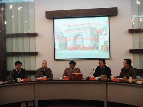 11月30日上午,四川省委党校、四川行政学院第10期中青年干部培训二班举行毕业典礼,来自21个市州、部分省级部门的42名副处级干部圆满完成三个月的学习任务,顺利毕业。省委党校、行政学院副校院长李新,省委组织部干部一处副处长孙龙、干部教育培训处副处长王军出席了毕业典礼。毕业典礼由教务处处长邓颖主持。