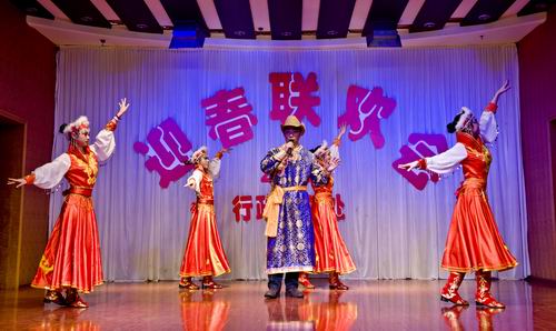 音符舞动辞旧岁,旋律飞扬迎新年。行政后勤处职工翘首期待的一年一度迎春的保留节目“春晚”,于2013年1月10日14:30分在蜀光大厦16楼多功能厅成功举办。副校院长尹科夫,校委委员、秘书长古德辉等校院领导出席了迎春联欢会,校院领导与行政后勤处近200人职工一道联欢,共迎新春。