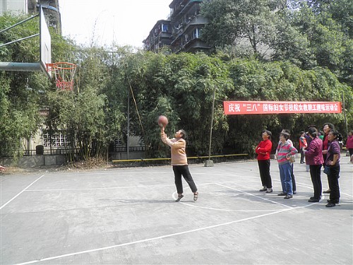 3月8日下午的东区篮球场人流如潮、热闹非凡,校院机关党委、工会和离退休人员工作处在这里组织了庆祝“三八”国际妇女节体育活动,本次体育活动设有定点投篮、跳绳、掂乒乓球等三个项目,吸引了近200名女教职工踊跃参加,其中有不少来自离退休女教职工。