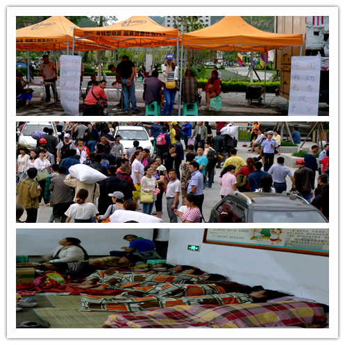 王春英教授带领学生分别去汶川体育场、汶川第一小学和汶川第二小学三个安置点实地调研,了解群众的诉求,近距离观察他们的行为反应,用录音、拍照、录像等多种方式全方位收集信息。