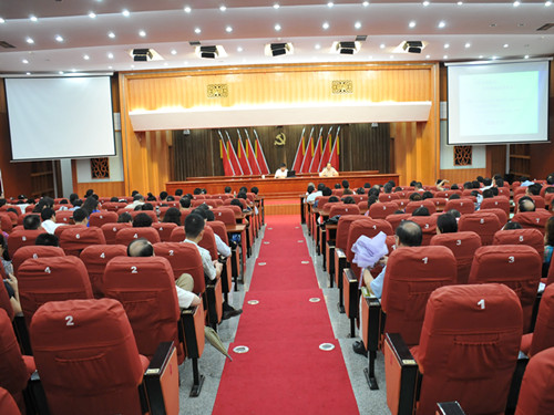 7月18日下午,校院党的群众路线教育实践活动第二场专题辅导报告会在国际学术演讲厅召开,副校院长李新副教授作辅导报告。全体校院委委员、在职全体党员、离退休党总支书记参加报告会,校院委委员、机关党委书记肖敬军主持会议。