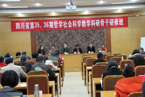 11月12日上午,四川省第35、36期哲学社会科学教学科研骨干研修班在我校举行开学典礼。来自全省各高校及市州从事哲学社会科学教学及科研工作的同志将进行为期一个月的学习研修。省委党校巡视员周治滨、省委宣传部巡视员王素、省教育厅思政处处长曾中良等出席了开学典礼。开学典礼由省委宣传部理论处处长王骏飞主持。