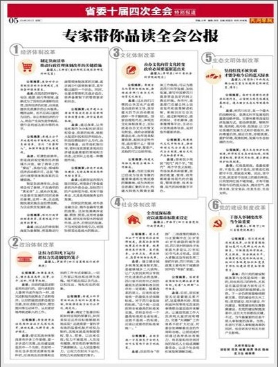 2014年2月11日出版的《天府早报》关于省委十届四次全会系列报道专栏刊登了省委党校罗振宇、彭穗宁教授对省十届四次全会公报的解读。
