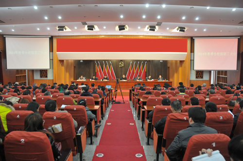 在回顾总结去年校院工作时,刘毅谈到,过去一年,我们始终围绕中央、省委重大决策部署开展工作,坚持把提升质量作为工作主线,注重抓大事、破难事、办好事,校院整体工作呈现出生机勃勃、朝气蓬发的可喜局面。一是认真贯彻落实中央省委重要会议精神。深入学习习近平总书记系列重要讲话精神,认真贯彻落实党的十八大、十八届二中、三中全会和省委十届三次全会精神,组织专家学者参加宣讲近300场次,发表理论文章60余篇。二是扎实开展教育实践活动。认真贯彻落实中央八项规定和省委十项规定精神,研究制定《关于改进工作作风、密切联系职工学员的若干规定》,并对学员作出了“六项制度”和“八个不准”的严格规定。牢牢把握中央、省委要求并结合自身实际扎实开展教育实践活动,在学习教育、听取意见,查摆问题、开展批评,整改落实、建章立制等阶段深入动员、精心组织,活动取得了实实在在的效果。三是教学培训的针对性实效性进一步增强。全年共举办221期轮培训班次,培训学员15291人。全年共有14位省领导、共23人次莅临校院,无论人数、次数都创了新高。四是科研咨询的思想库和智囊团作用进一步彰显。全年立项各类课题310项,完成20项决策咨询研究项目,7份建议报告得到省领导15人次的批示,其中东明书记批示5份、魏宏省长批示2份。五是自身建设有了进一步的提升。2次面向社会公开招聘高层次人才,大力推进职工住房建设, “智慧校园”系统全面运用,数字图情资源进一步完善,财务监管更加有力,后勤服务水平不断提升,内部管理更加科学规范有序。