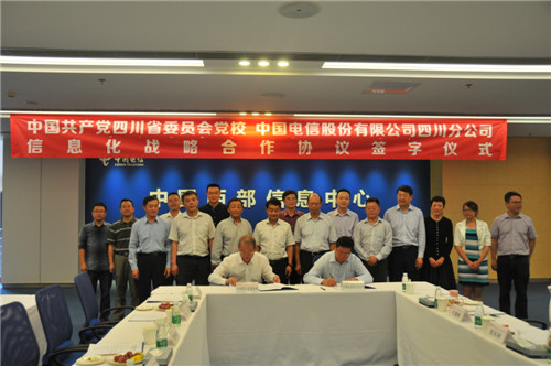 9月22日,中共四川省委党校与中国电信四川分公司信息化战略合作签字仪式在中国电信西部信息中心举行。省委党校常务副校长刘毅、中国电信四川分公司总经理赵麦庆分别致辞,并代表双方在合作协议上签字。中国电信四川分公司副总经理郑成渝主持签字仪式。省委党校副校长裴泽庆出席。