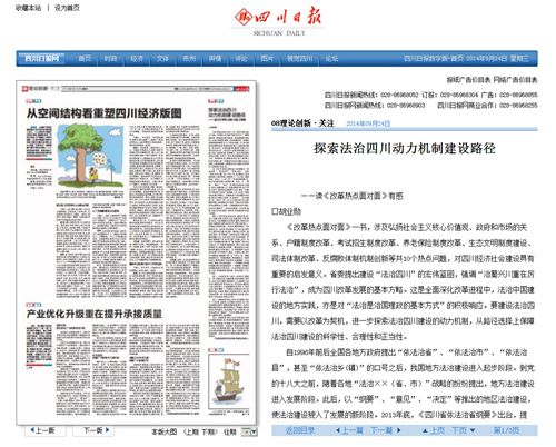 文章指出,省委提出建设“法治四川”的宏伟蓝图,强调“治蜀兴川重在厉行法治”,成为四川改革发展的基本方略。这是全面深化改革进程中,法治中国建设的地方实践,亦是对“法治是治国理政的基本方式”的积极响应。