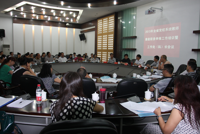 6月29日至6月30日,全省党校系统教师高级职务申报工作培训暨全省党校(行政学院)工作处(科)长会议在我校召开。副校(院)长陈志全出席会议。省委党校、省直机关党校、各市(州)委党校、委托评审单位负责高级职务申报的有关同志,各市(州)党校(行政学院)工作处(科)长,省委党校(行政学院)工作处共计60余人参加会议。会议由省委党校(行政学院)工作处处长郑军主持。会议总结了2014年度全省党校系统教师高级职务申报评审工作,交流了职称申报、业务指导和推进县级党校办学体制改革等工作经验,部署了2015年度教师高级职务申报、县级党校办学体制改革及业务指导等重要工作。