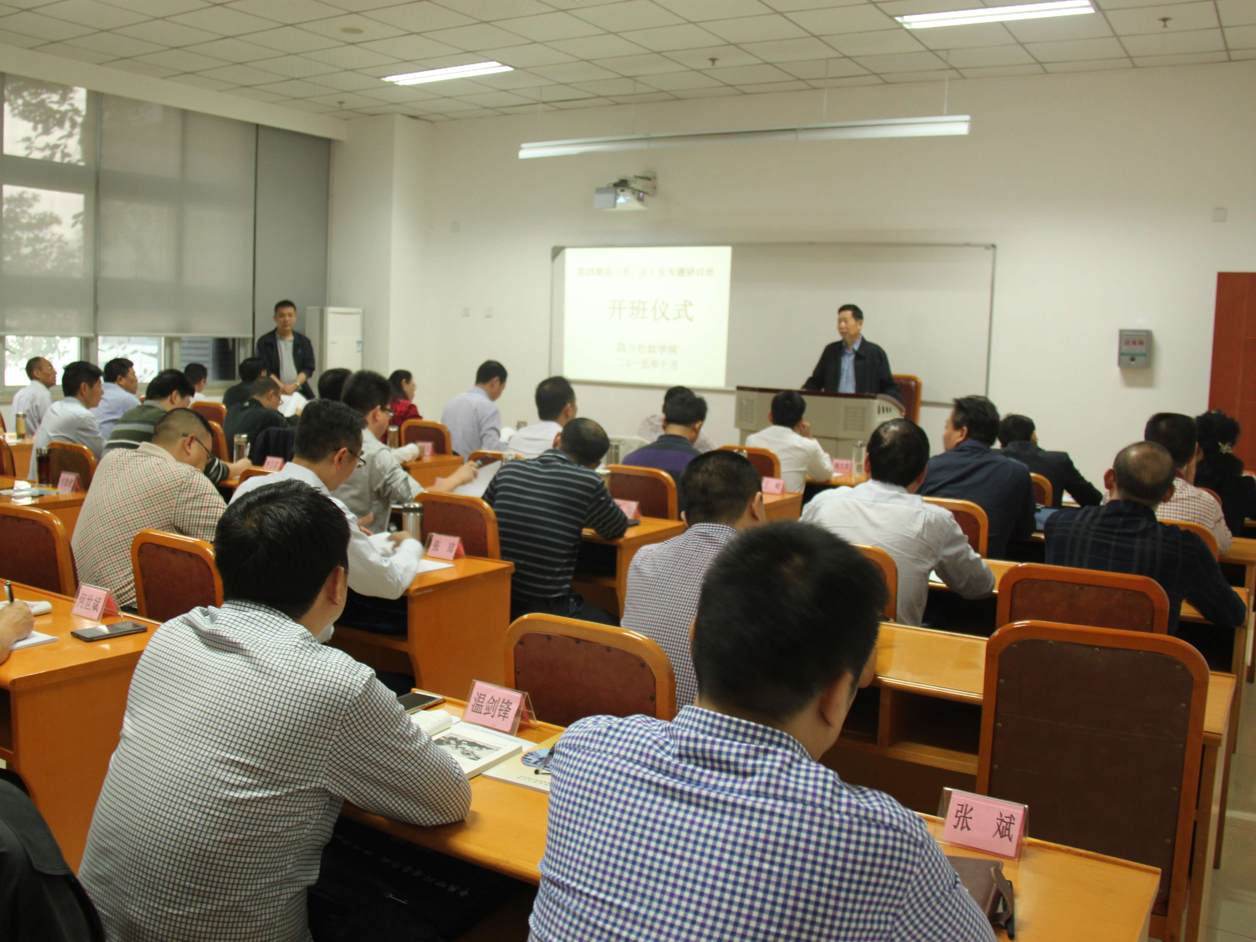 10月13日上午,四川行政学院第28期县(市、区)长“一带一路”战略专题研讨班举行开班仪式。四川行政学院教育长吴志强出席开班仪式并讲话。培训部主任胡雪松主持开班式。
