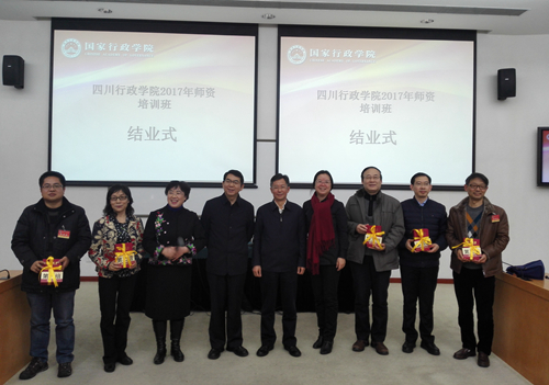 元月3日至9日,校院2017年经济类师资培训班在国家行政学院举办。本次培训由副校院长李章忠、邓颖带队,共选派经济学、区域经济学、公共管理教研部以及“5.12”中心、决策咨询部等11个相关教研、教辅部门48名人员参训。国家行政学院副院长杨克勤会见了李章忠、邓颖两位副校院长,看望慰问全体学员,对大家提出殷切希望,并与全班合影留念。
