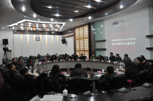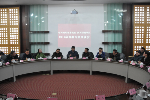 1月11日,校院召开2017年迎春专家座谈会,听取意见建议,畅谈所思所想,展望未来发展。常务副校院长李新主持会议并讲话。校院领导李章忠、陈志全、裴泽庆、邓颖、王勇、郑勇、吴志强、王纯雪出席座谈会。