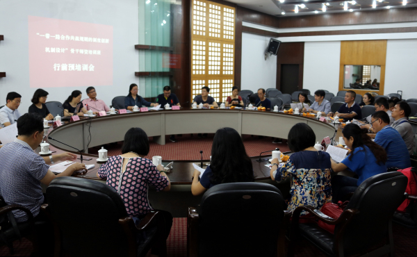 8月26日晚,校院召开赴德国“一带一路合作共赢规则的制度创新机制设计”骨干师资培训团组行前预培训会。常务副校院长李新,副校院长邓颖,校院委委员、机关党委书记唐峭雪,省外国专家局专家工作处处长杨佼佼出席会议。赴德培训团组成员参加会议。