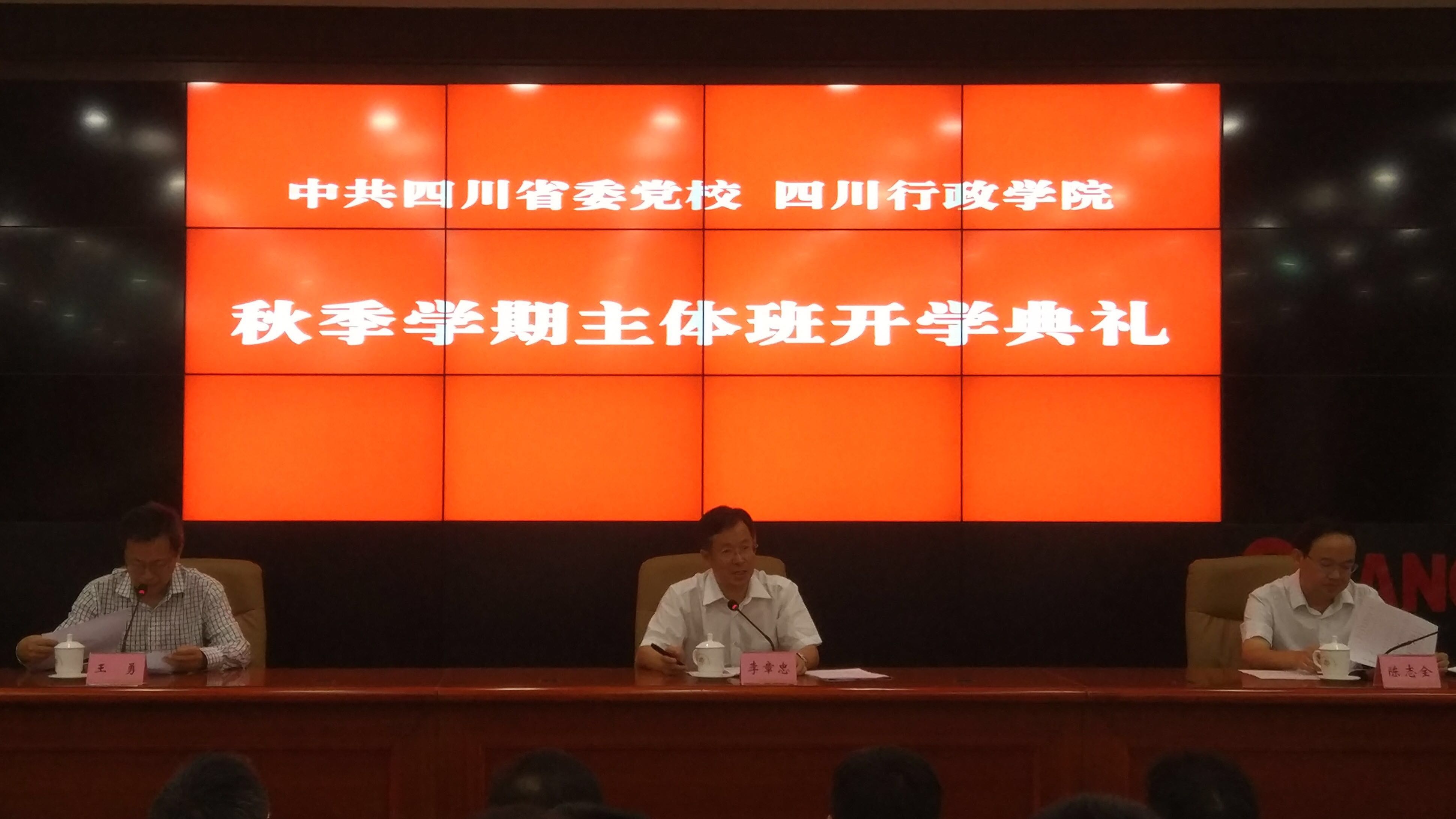 9 月1日上午,中共四川省委党校四川行政学院秋季学期主体班开学典礼在蜀华教学楼101教室举行。副校院长李章忠出席开班式并讲话,副校院长陈志全出席会议,副校院长王勇主持会议。第40期省政府部门处级公务员任职培训班、第27期全省党校、行政学院(校)师资培训班、硕士研究生班的学员参加了开学典礼。