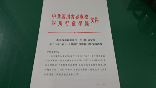 今年首次通报了2017年1-6月校院部门预算执行情况。1-6月,校院部门预算总体执行进度为28.12%(校院预算资金包括财政资金和财政专户资金两部分),低于序时进度21.88个百分点。校院执行进度名列前五的部门为图书馆34.11%、期刊社 33.48%、行政后勤处33.3%、教务处32.91%、研究生部31.26%。2017年校院共安排部门项目经费预算5342.94万元,其中科研处245万元、信息技术部509万元、基建处 4428.94万元、“5.12”中心90万元、决策咨询部70万元,1-6月,共执行了30.35万 元,执行进度仅为0.57%,影响了校院在财政厅预算执行进度考核的排名。