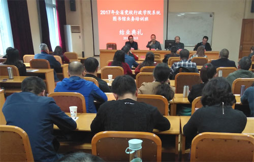 10月20日下午,2017全省党校行政学院图书馆业务培训班举行毕业典礼,标志着此次业务培训的圆满结束。校院委委员、秘书长郑勇作总结讲话,干部教育学院院长袁立培主持毕业典礼。图书馆馆长邓卫国、副馆长肖友国出席。