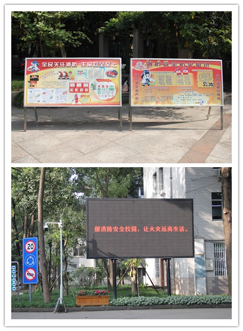 此外,还利用校院的电子滚动屏幕,消防知识、火灾案例展板等方式进行宣传。
