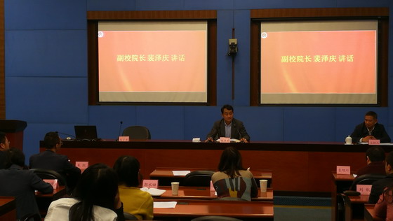 11月10日下午,校院学习宣传贯彻党的十九大精神青年教师座谈会在蜀光大厦雅玉厅召开。副校院长裴泽庆出席并作辅导发言。会议由科研处副处长程全跃主持。各教研部青年教师及有关部门同志共35人参加会议。