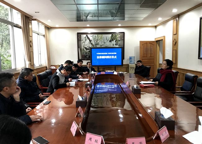 12月4日,校院举行法律顾问聘任仪式,副校院长邓颖向受聘法律顾问颁发聘书。