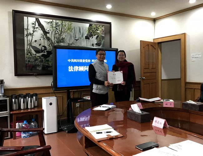 经校院委会审议通过,聘任法学教研部主任、教授赵明,副主任、副教授吴涛,讲师鲜艳为校院法律顾问。邓颖首先向接受聘任的法律顾问表示祝贺,她讲到,聘任校院法律顾问是落实中央、省委文件精神,推进依法治校、提高校院委依法决策水平的一项重要工作。12月4日是国家宪法日,在这个特殊的日子举行法律顾问聘任仪式,形式庄重、意义重大。担任校院法律顾问既是荣誉、也是责任,希望受聘顾问坚定政治立场,发挥专业能力服务校院涉法事务,促进校院各项工作依法依规推进。