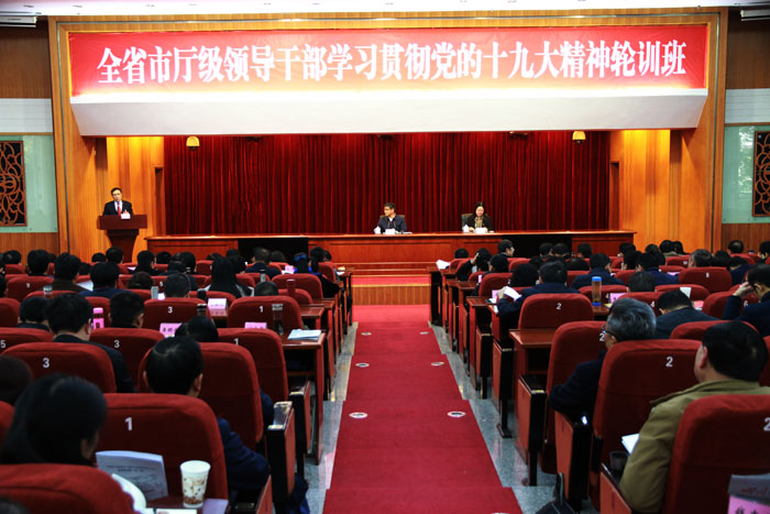 参加第一期全省市厅级领导干部学习贯彻党的十九大精神轮训班的262名学员圆满完成为期四天的培训学习,于12月20日下午举行结业式。常务副校院长李新出席结业式,副校院长邓颖主持。