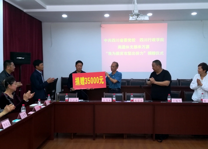 4月19日下午在万源市委党校举行了向万源市玉带乡下启山村的帮扶捐赠仪式,捐赠三万五千元整。这是离退休党总支向校院全体离退休党员和老同志发出“我为脱贫攻坚出份力”的倡议以来收到的捐款。