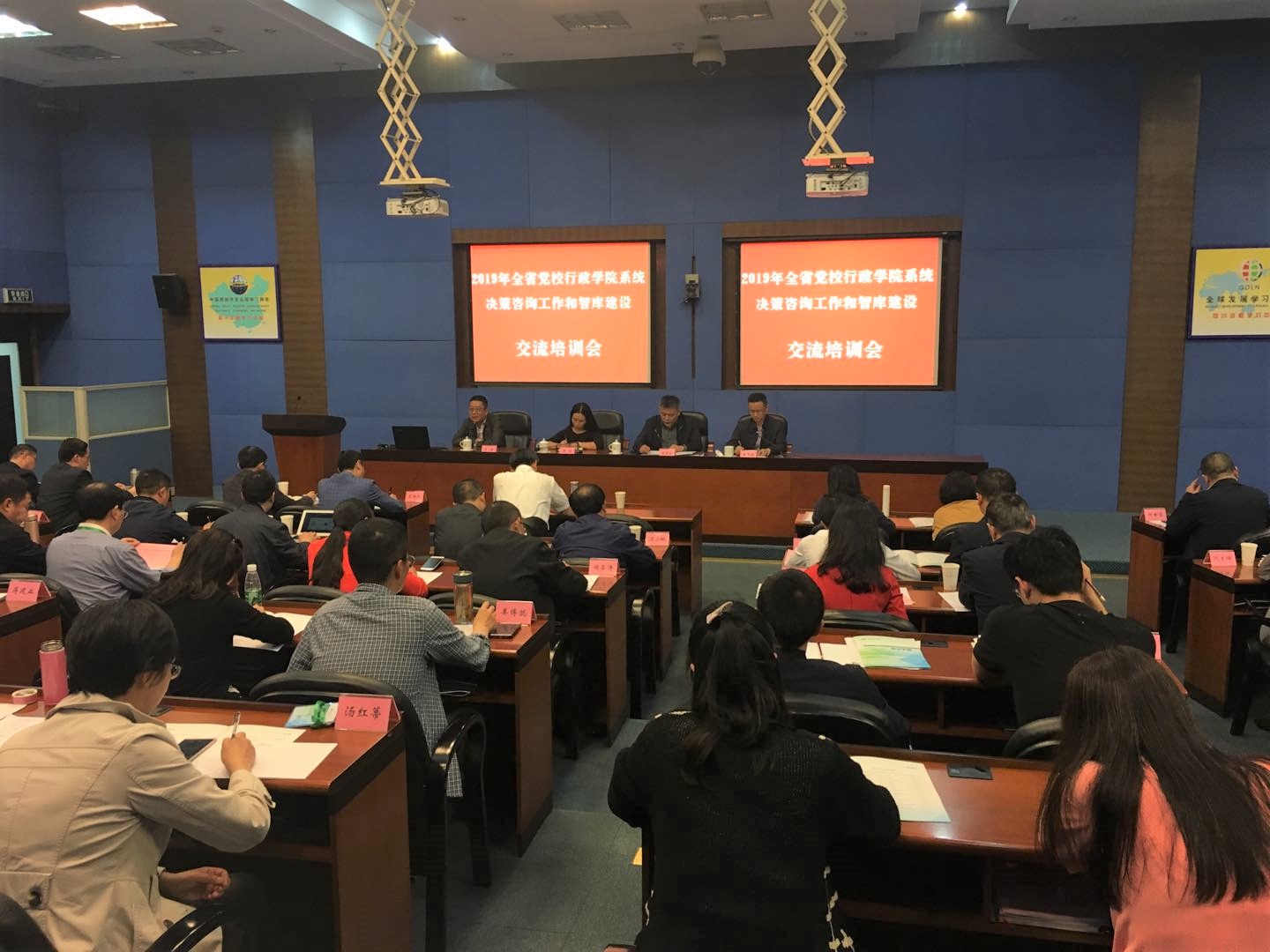 4月18日-19日,全省党校行政学院系统决策咨询工作和智库建设交流培训会在校院举行。来自省直机关党校、各市州党校和部分企业党校的有关负责人、校院各智库研究人员汇聚一堂,围绕“推动党校行政学院决策咨询工作和新型智库高质量发展”这一主题,交流探讨如何推进新型智库建设、着力提升全省党校行政学院系统决策咨询研究能力和智库建设水平。会议现场座无虚席、气氛热烈,与会代表早早赶到会场,期待从专题辅导中释疑解惑、从先进经验中受到启发、从分组讨论中碰撞思维,共同推进全省党校行政学院决策咨询工作新发展,奋力开创党校行政学院智库建设新局面。会议期间,常务副校院长李新专程前往会场,看望授课专家,与参会代表亲切交流。