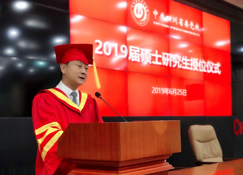 2019届毕业生王建涛、杨嶟分别代表学术型硕士和专业硕士学位获得者发言。他们回顾了在校学习期间的难忘时刻,深情地表达了对母校的不舍之意和感恩之情,也表达了对明天开启全新征程,书写多彩青春,放飞美丽梦想的期待。他们表示,作为党校培养的硕士研究生,一定会不忘初心,牢记使命,砥砺前行,为学习贯彻落实好习近平新时代中国特色社会主义思想做出应有的贡献。