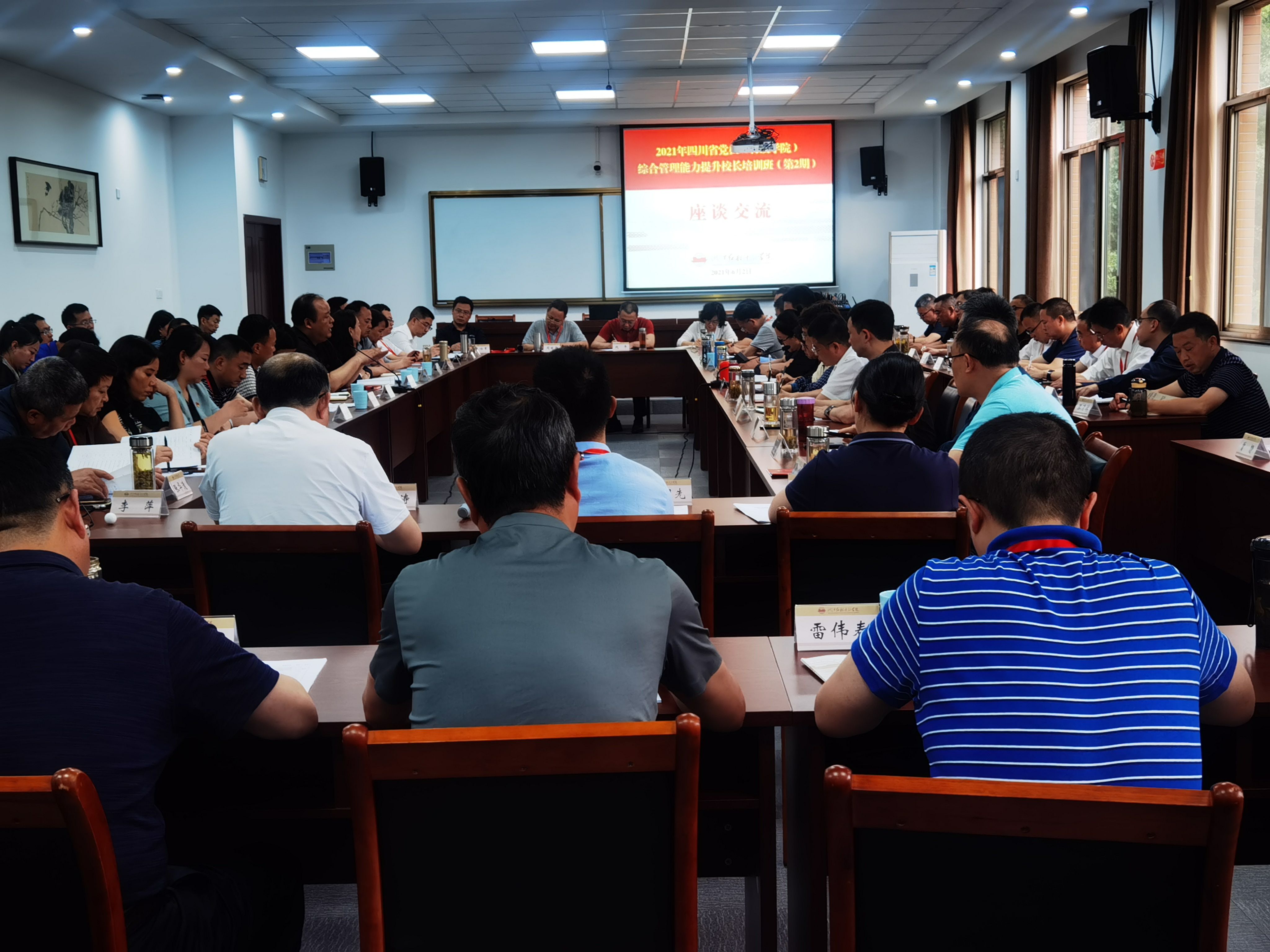 本次培训是省委组织部、省委党校《2020-2022全省党校系统师资提能培训计划》中重要培训班次,在全国上下深入开展党史学习之际,在我们党诞生100周年之时,到红船干部学院学习,一方面接受红船干部学院党性教育的洗礼,另一方面也学习借鉴红船干部学院好的经验和做法,提升自身办学治校的水平和能力。本次培训以专题辅导、分组研讨、现场教学等多种方式进行。参训学员认真学习了浙江省委党校、红船干部学院老师讲授有关红船精神、八八战略、长三角一体化、如何提高党校科研决策咨询以及创新社会治理等方面的专题辅导,学员们还赴嘉善规划展示馆、杭州市党群服务中心和“五四宪法”历史资料陈列馆、桐乡越丰村和汇丰村等地亲身感受当地党建与乡村振兴的活力。培训期间,学员们还同红船干部学院分管校领导及中层干部展开互动交流,增进了浙江与四川干部教育事业相互借鉴和沟通交流。利用晚上休息时间,大家结合几天来学习、感悟和自身工作实际开展了研讨和小组经验交流。培训结束后还举办了丰富多彩文艺晚会,晚会在“没有共产党就没有新中国”的合唱声中拉开序幕,唱响党校人活力,展示了校长们的才艺,也活跃了学员们的学习生活。