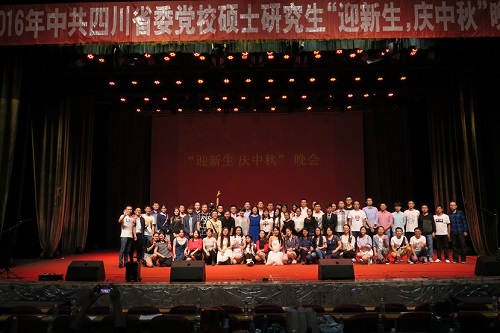 首先,党总支李季书记致辞,对2016级硕士生表示热烈的欢迎,对前来参加晚会的高校、科研院所的同学们表示热烈欢迎;寄望同学们在四川省委党校度过有意义的三年研究生生活;祝福大家度过愉快的中秋佳节。随后,晚会在舞《歌曲串烧》拉开了序幕。三名女生活泼的舞姿,婉转的歌声再加上动感的音乐,充分展示了青春的朝气与活力,搏得了大家的热烈掌声。