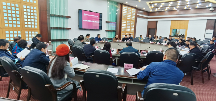 裴泽庆传达了习近平总书记关于研究生教育工作的重要指示和李克强总理批示及全国研究生教育会议精神,就《教育部国家发展改革委 财政部关于加快新时代研究生教育改革发展的意见》《国务院学位委员会 教育部关于进一步严格规范学位与研究生教育质量管理的若干意见》《教育部关于印发<研究生导师指导行为准则>的通知》三个文件进行了学习辅导,并结合校院实际,深入分析了当前校院研究生教育工作中还存在着“学科建设水平有待进一步提升、守住底线的压力还比较大、对标一流发展的压力还比较大、管理体系还有待进一步完善”四个方面的问题与不足。