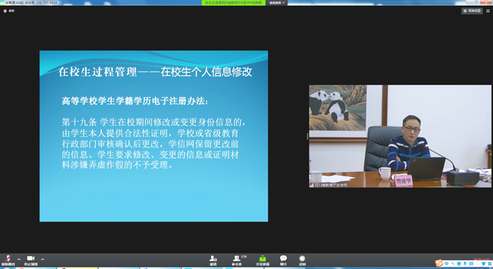 为进一步规范我省高等教育学籍学历管理工作,提升各高校和研究生培养单位学籍学历管理工作水平,2021年5月20日下午,教育厅召开了全省普通高校和研究生培养单位学籍学历管理工作视频培训会,厅高校学生工作处和就业指导中心有关负责同志在教育厅主会场出席。