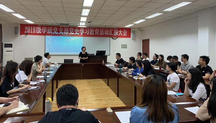 为庆祝中国共产党成立一百周年,扎实开展好党史学习教育,根据校(院)机关党委和研究生部党总支关于党史学习教育的部署安排,2021年6月2日,2019级学硕党支部在西区教学楼505召开了党史学习教育活动汇报大会,全体党员及入党积极分子参加,会议由支部书记彭绍帅主持,总支组织委员沈玺出席。